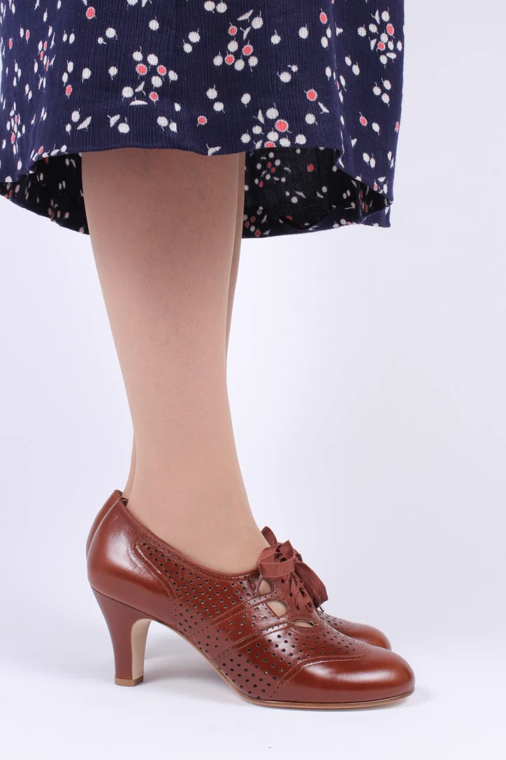 Early 1930s oxford high heels- Cognac Brown - Marie