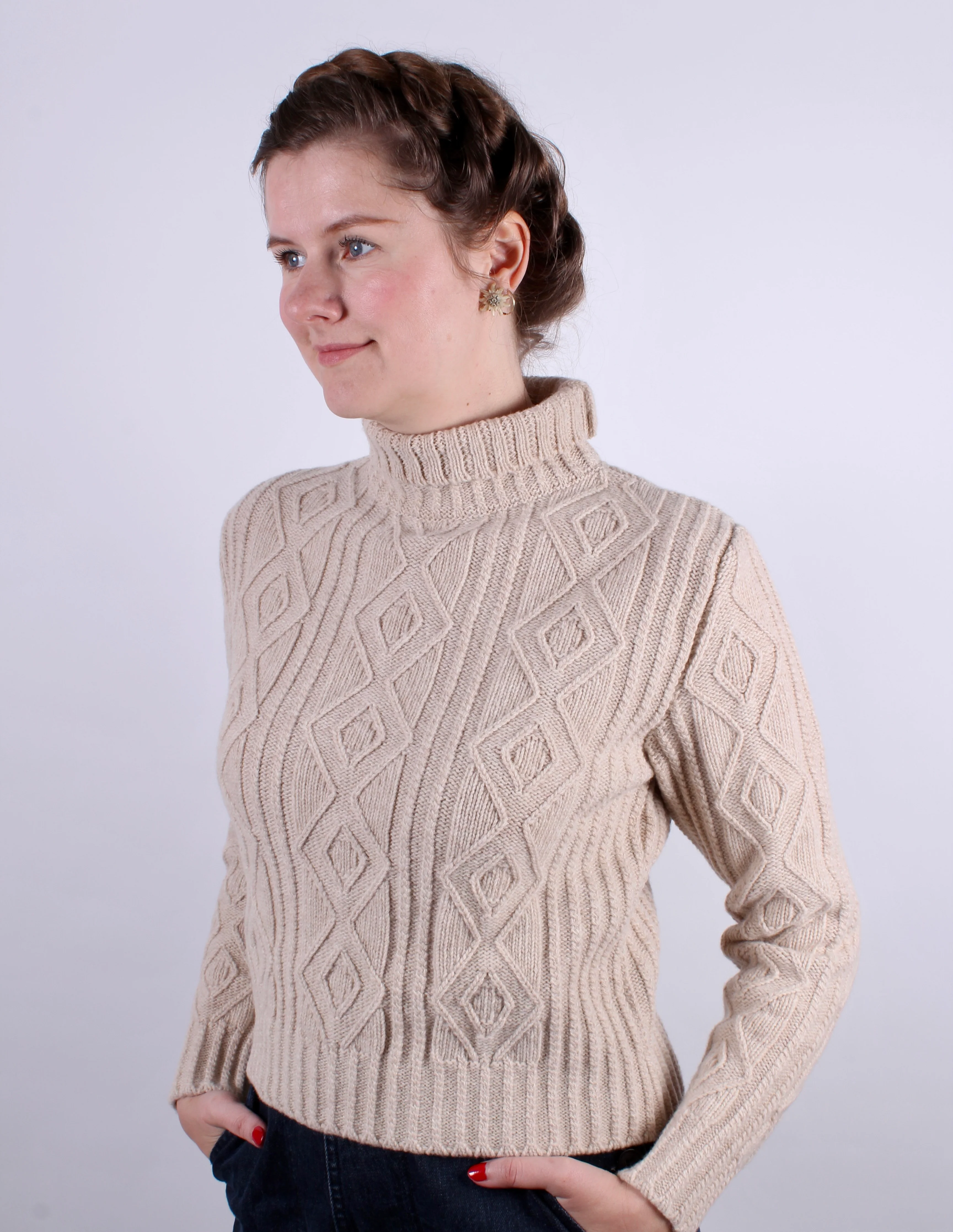 1940s style turtleneck pullover - Cream - Inger