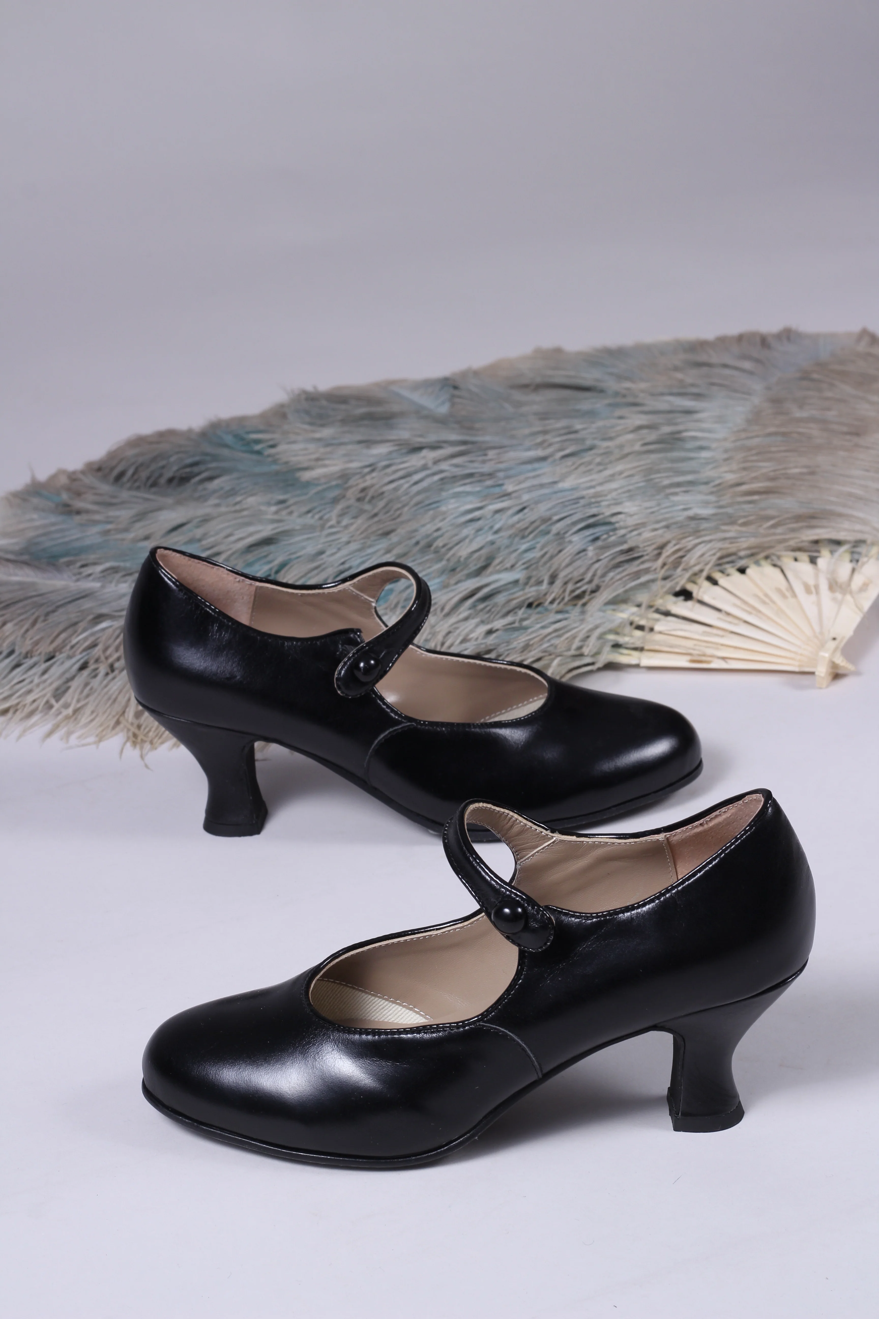 Classic 1920s-inspired Mary Jane pumps with a button for closure