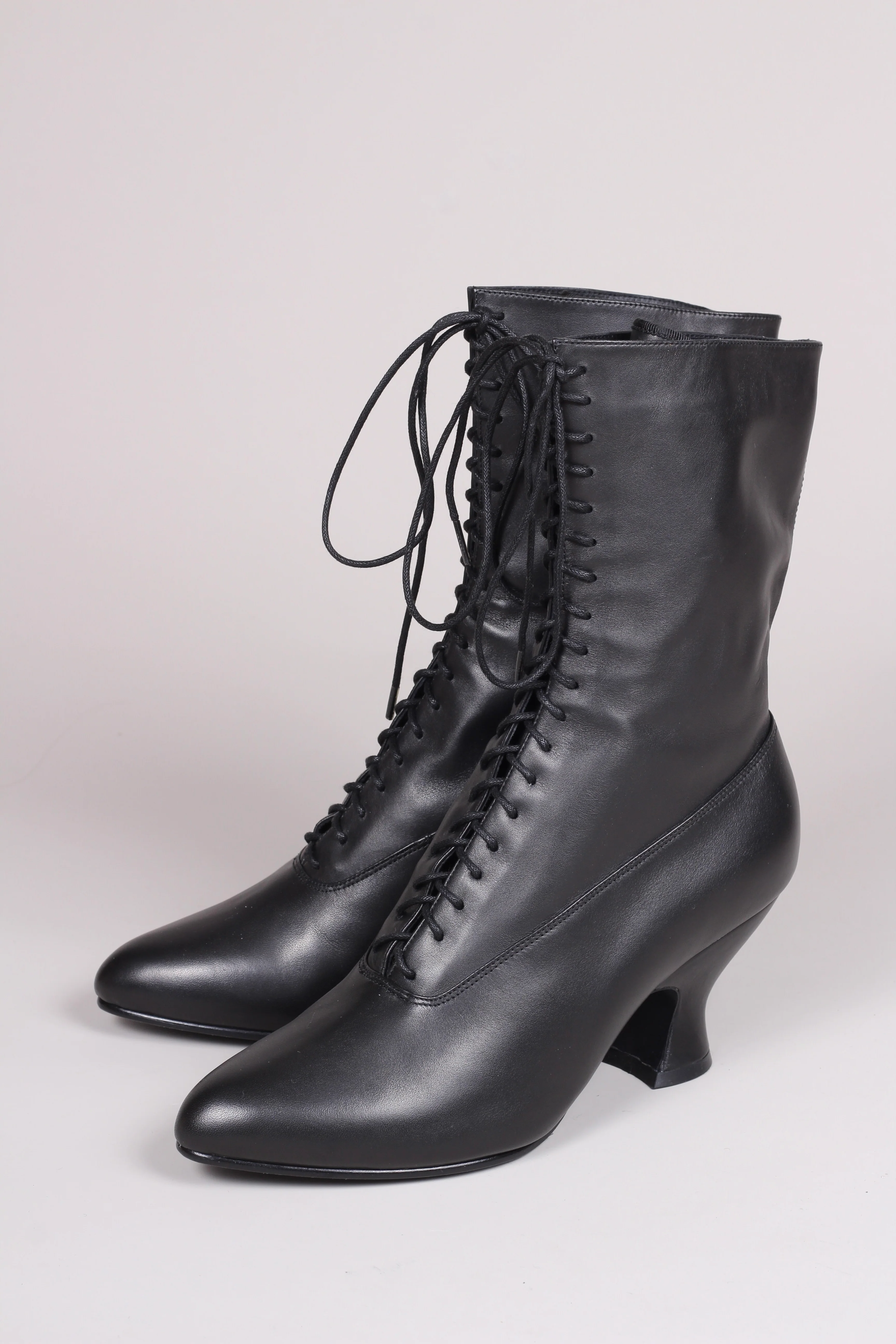 An elegant Edwardian-inspired lace-up boot made of very soft leather.