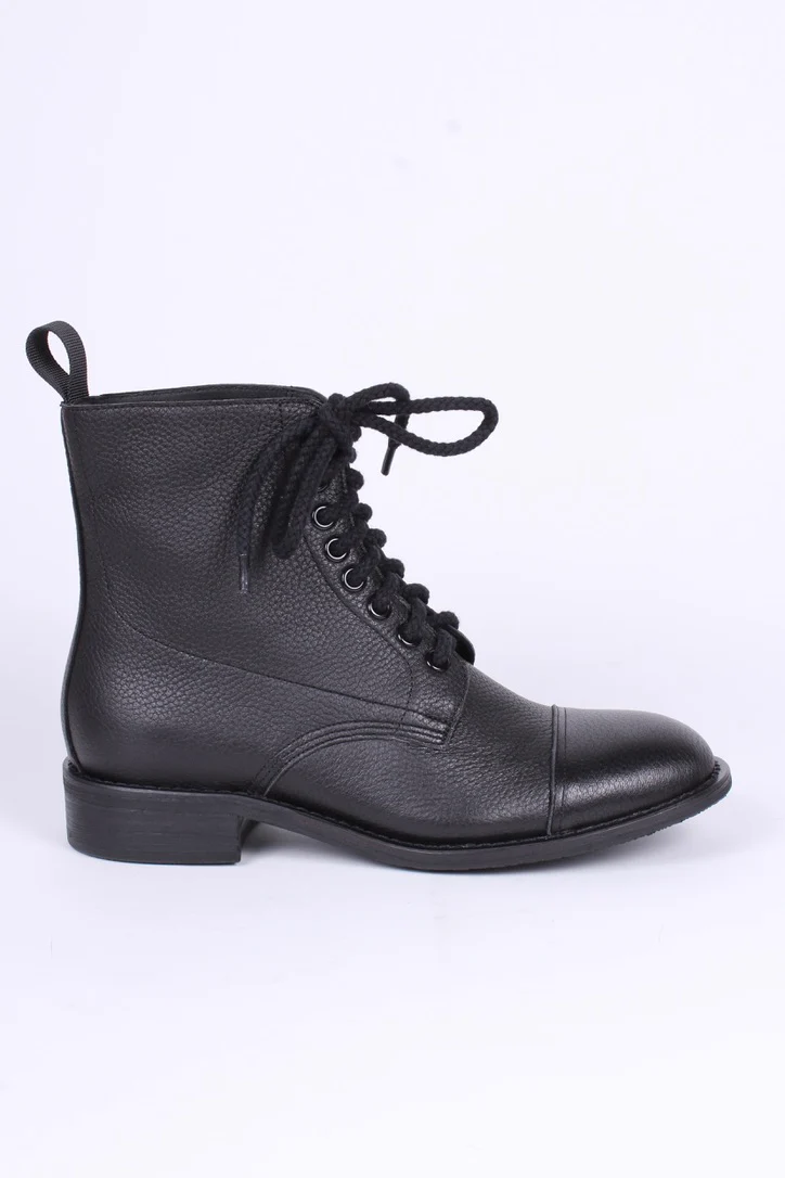 Introducing Robbie, an authentic-looking WWII 1940s-inspired leather lace-up boot. These sturdy, casual boots are crafted from full-grain structured leather and feature a rounded toe cap, a slim-fitting boot shaft, eight pairs of metal eyelets for the laces, and durable rubber outsoles.
