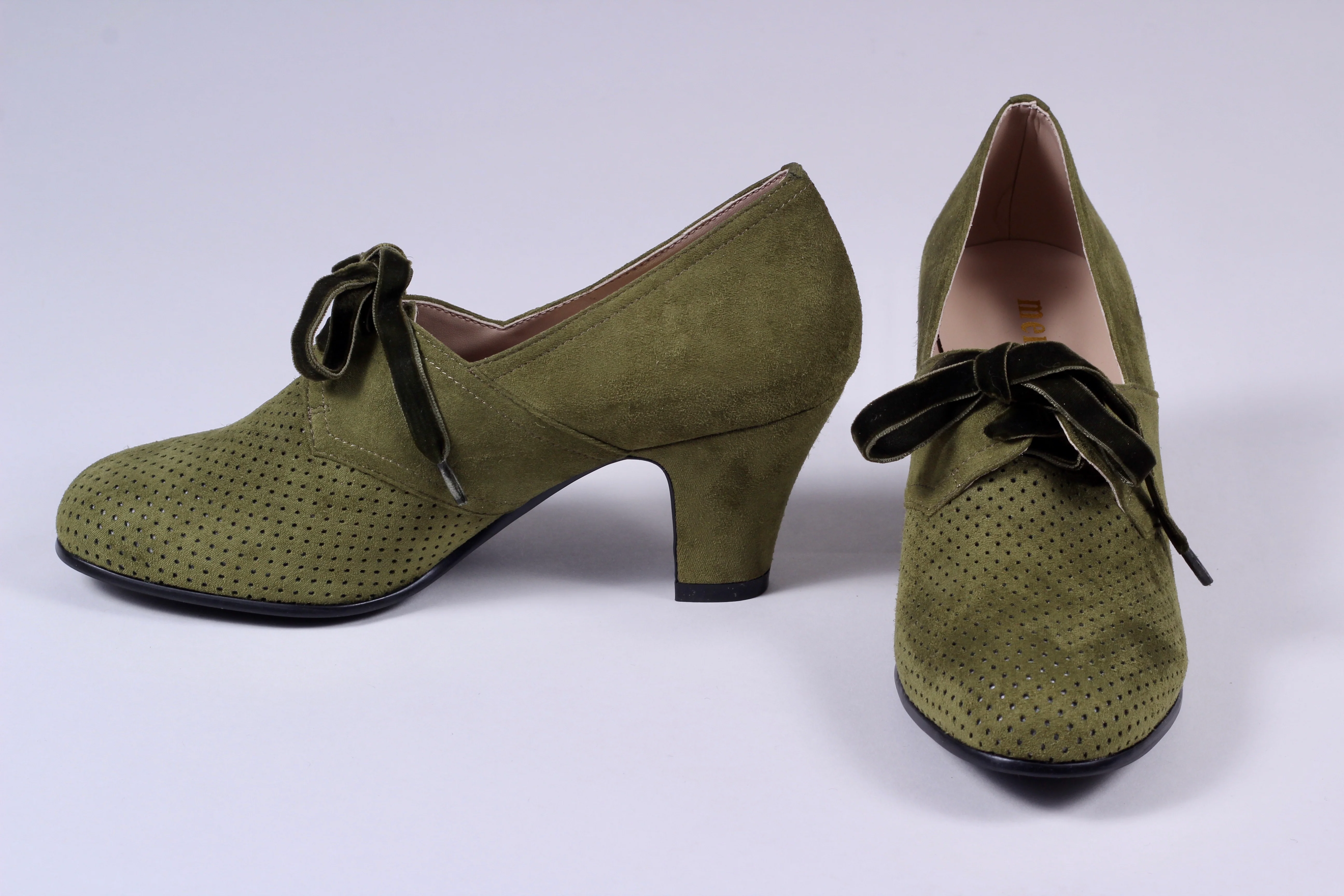 VEGAN shoes - 40s vintage style pumps with shoe lace - Green - Esther
